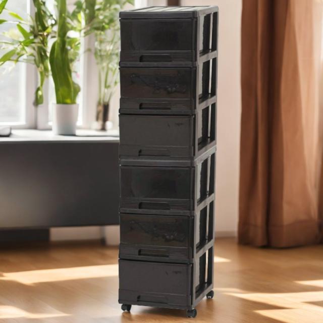 収納ケースの引き出しは収納品が見えにくい見た目もお洒落なスーパーブラック色です。