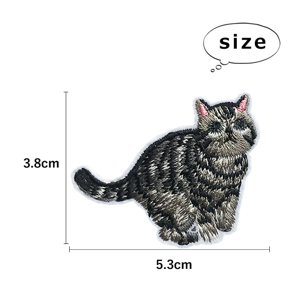 ねこ ワッペン 刺繍 アイロン接着 縦3.8cm×横5.3cm cat 猫 動物 アニマル 手芸 入園 入学 アップリケ母の日 プレゼント ギフト