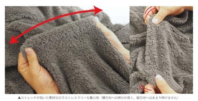 ■モコモコファーシリーズは、肌ざわり&着心地に徹底的にこだわった柔らかい毛足の ファー素材のマイルウエア。 「着たまま眠っても気持ちの良い服!」「着ている人も、そばに いる人も癒される」 「ふわふわ、もこもこ、ぬくぬく、とにかく暖かい!」「そしてマイルウエアとして外出もできる」・・・といった シリーズコンセプトで作られた秋冬の最強リラックスウエアです。