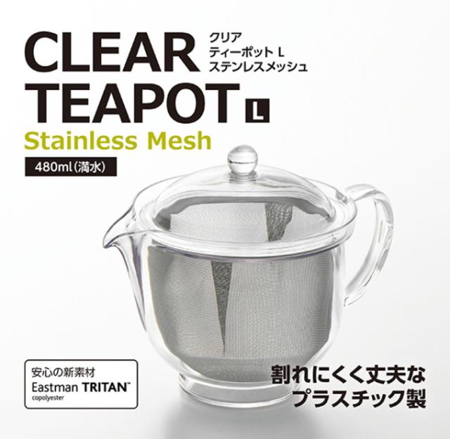 クリアティーポットL ステンレスメッシュ TW-3722 日本製 お茶 ティー ティーポット 急須 丈夫 ストレーナー付き 茶こし付き 透明 ステンレス プラスチック製 割れにくい 食洗機対応 曙産業