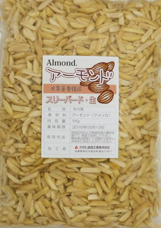 アーモンドスリーバード 生 1kg 世界美食探究 カリフォルニア産 国内加工 生アーモンド ナッツ 製菓材料 製パン材料 焼菓子 無添加 無塩 無油