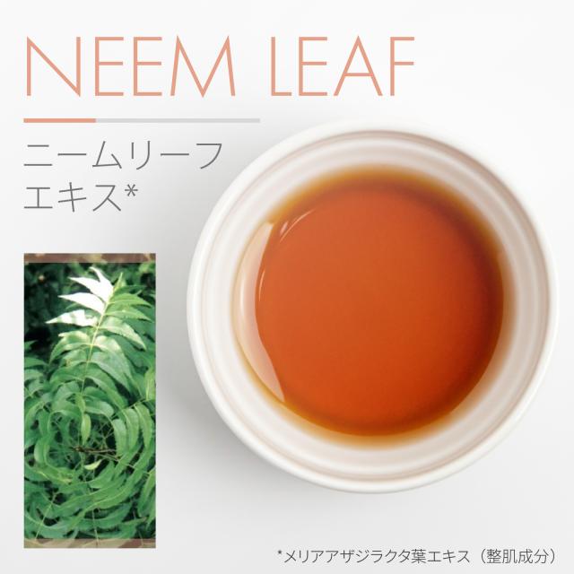 ニームの葉から抽出したニームリーフエキスは、肌を健やかに保ち、潤いのあるハリ・ツヤあふれる美肌へと導きます。