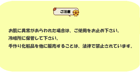 ●溶かしたい香料(精油など)をその3倍程度のポリソルベートに溶かして下さい。これを化粧水やお風呂に入れて混ぜて下さい。