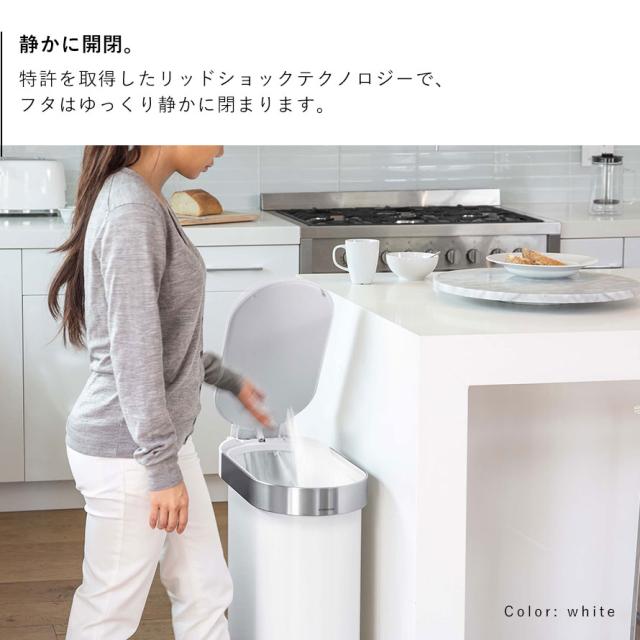 simplehuman,シンプルヒューマン,シンプルヒューマン ゴミ箱,ゴミ箱 45l ステンレス ペダル,キッチン ゴミ箱 45l ステンレス,ゴミ箱,ごみ箱,ダストボックス,45リットル,45l,45L,容量,ペダル式,ペダル,ステップカン,ふた付き,フタ付き,蓋つき,ふた,フタ,蓋,縦型,縦,ステンレス,スリム,直接手が触れない,非接触,触らない,触れない,ソフトクローズ,音,静か,静音,袋が見えない,袋,見えない,ゴミ袋,隠せる,交換しやすい,汚れにくい,汚れが付きにくい,生ゴミ,生ごみ,キッチン,台所,リビング,屋内,室内,会社,オフィス,高級,高級感,生活感が出ない,すっきり,北欧,シンプル,モダン,スタイリッシュ,おしゃれ,お洒落,オシャレ,インテリア,一人暮らし,独り暮らし,部屋,家,マンション,アパート,トータルコーディネート,新生活,引越,引越し,引っ越し,新築,新居,ホワイト,白,