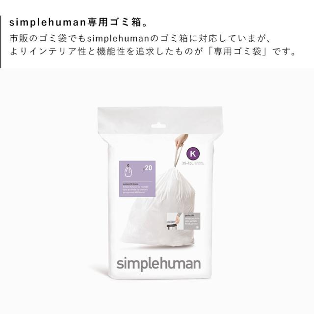simplehuman シンプルヒューマン 専用ゴミ袋 K 35-45L 純正 専用 ゴミ袋 ごみ袋 紐付き ゴミ箱 ごみ箱 カスタムフィットライナー K 00163 4Pセット メーカー直送