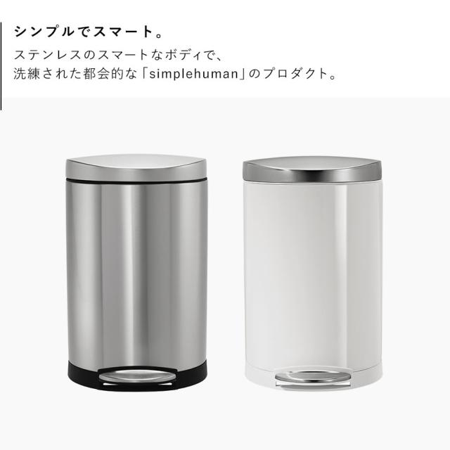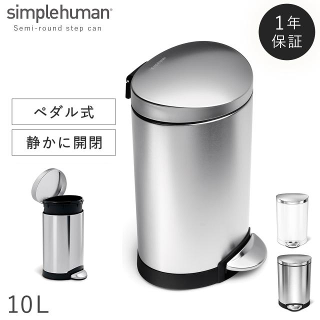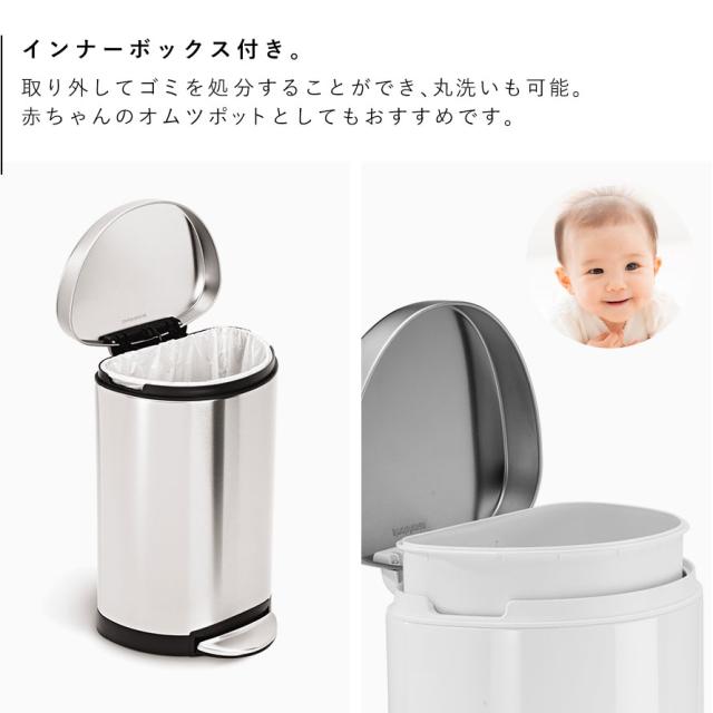 simplehuman シンプルヒューマン 【正規代理店・1年保証付】ごみ箱 ゴミ箱 おむつ オムツ 臭わない 密閉 おむつバケツ おむつ用 オムツ用 バケツ ふた付き ステンレス スリム 赤ちゃん ベビー おむつ替え 10リットル 10l 10L 台所 横型 横 丸型 丸 おしゃれ スタイリッ...