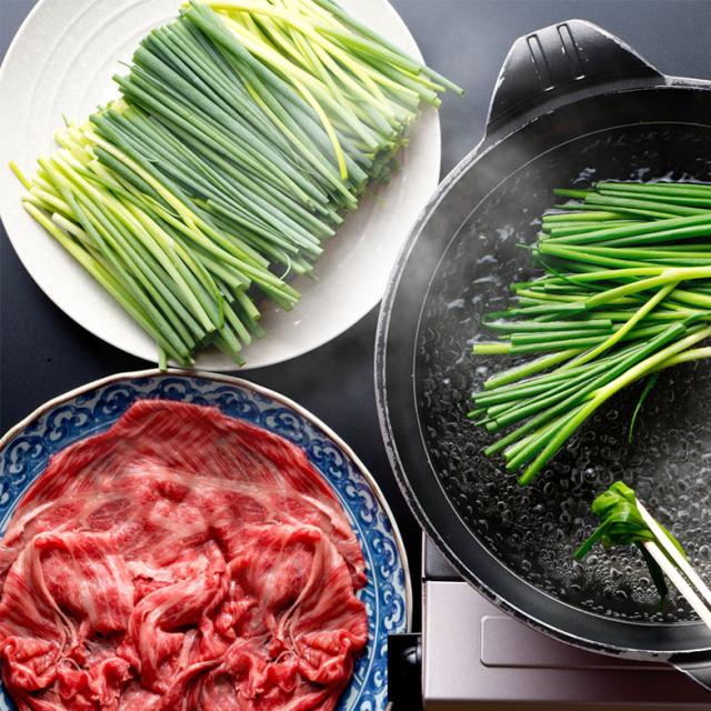 - 新鮮なネギが5束も入っていて食べれる?と思ったけど、辛みのないとっても甘いネギで旨い出汁にからんでとても美味しくて家族三人で取り合いで余裕でした!半分くらいをネギだけしゃぶしゃぶ、あとの半分をはもと牛...