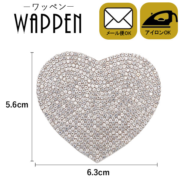 ワッペン アップリケ ストーンワッペン アイロン接着 ハートワッペン 縦5.6cm×横6.3cm シルバー ハート母の日 プレゼント ギフト