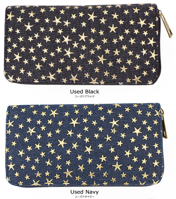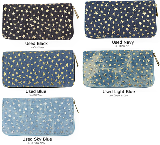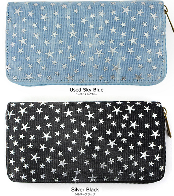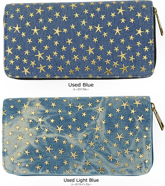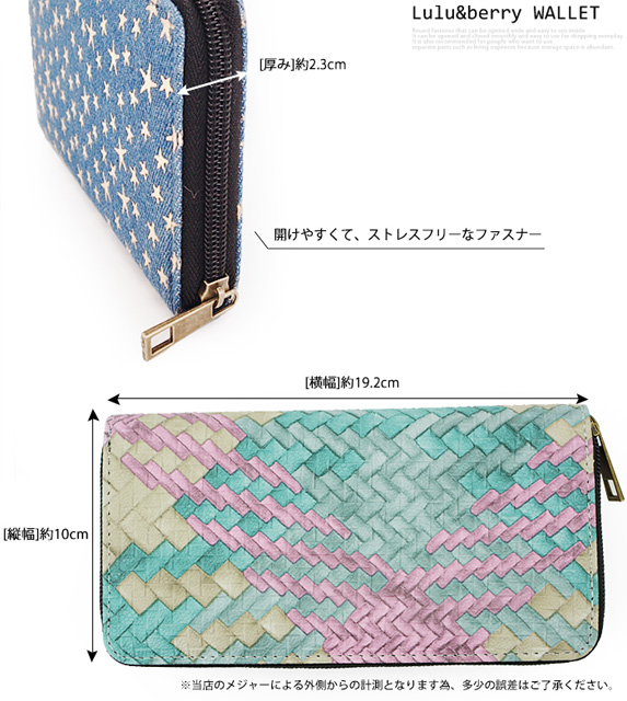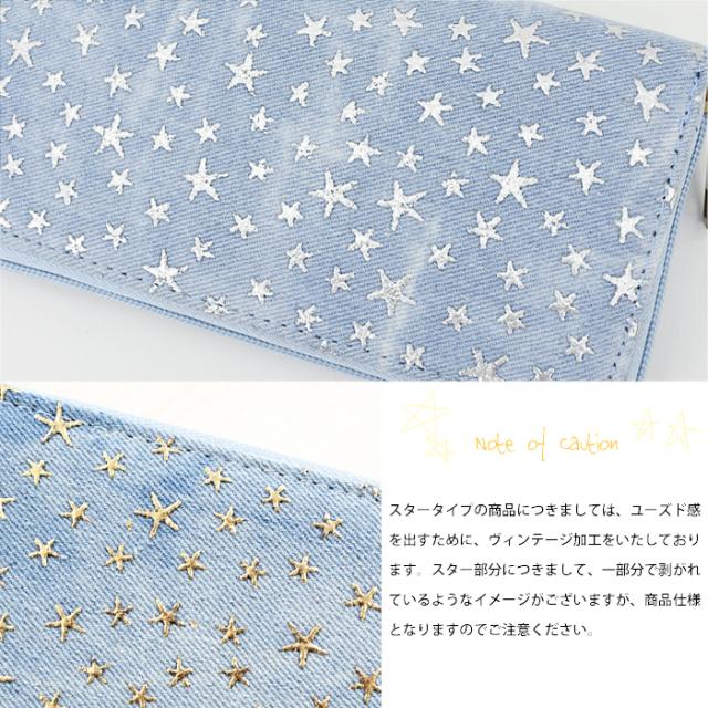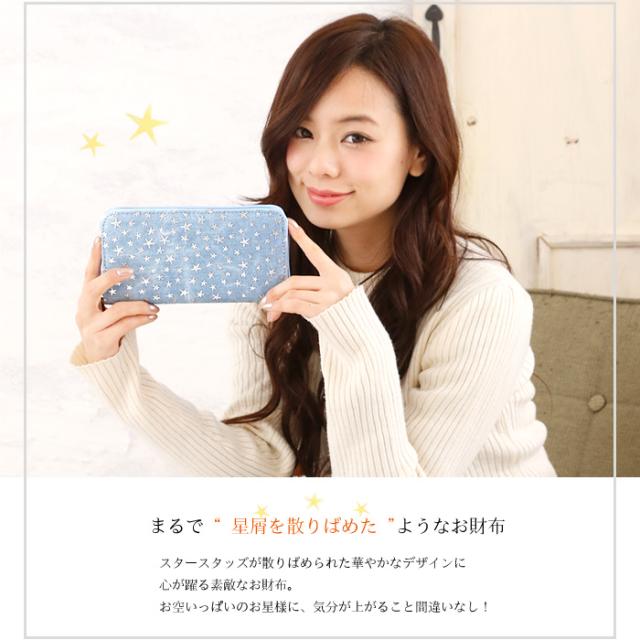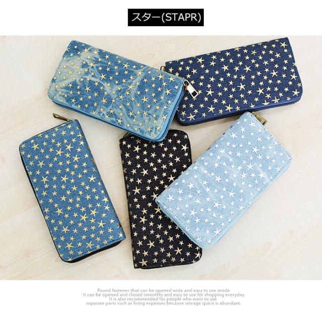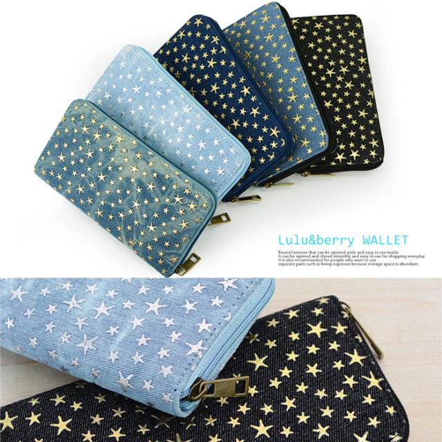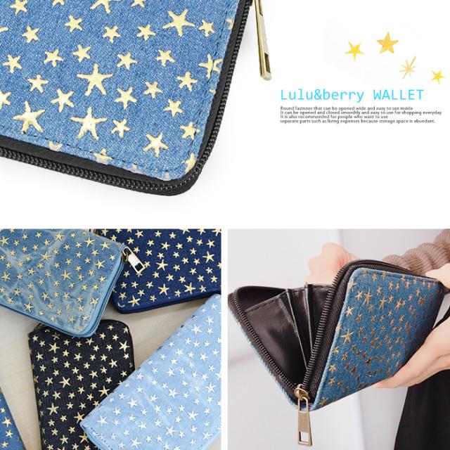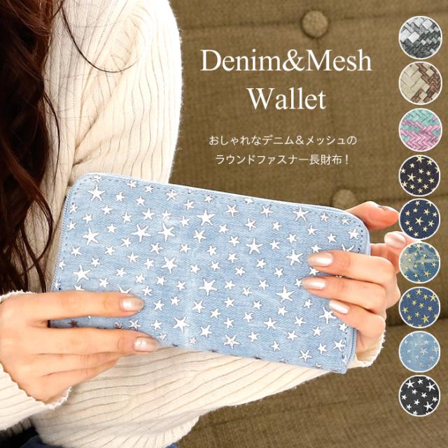【2個買って1個無料】 長財布 レディース デニム 星 スター 柄 メッシュ Lulu&berry ラウンドファスナー 財布 おしゃれ 大人 かわいい カジュアル 女性 プレゼント プチプラ 黒 ブラック ブラウン ピンク ネイビー ブルー (ar-STAPR-MIXPRm)【メール便送料無料】