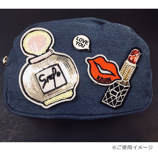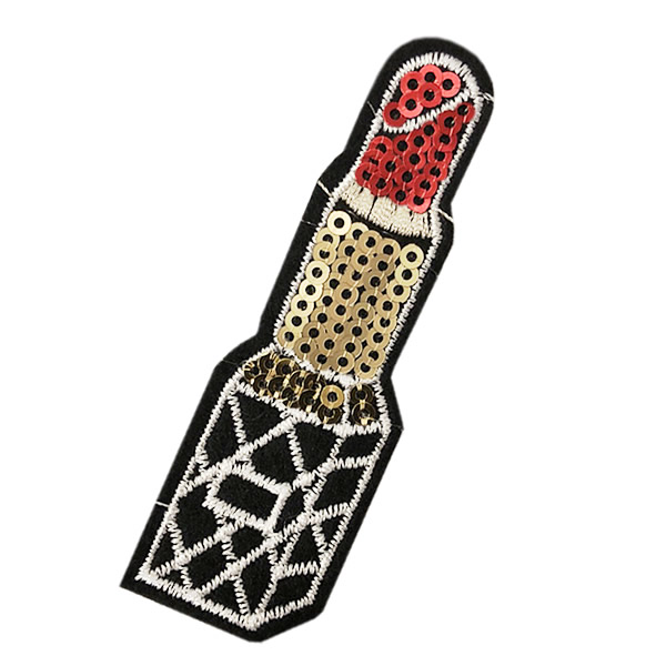 ワッペン リップ 口紅 スパンコールワッペン アイロン接着 縦7.7cm×横2.5cm コスメデザイン アップリケ アイロンワッペン母の日 プレゼント ギフト