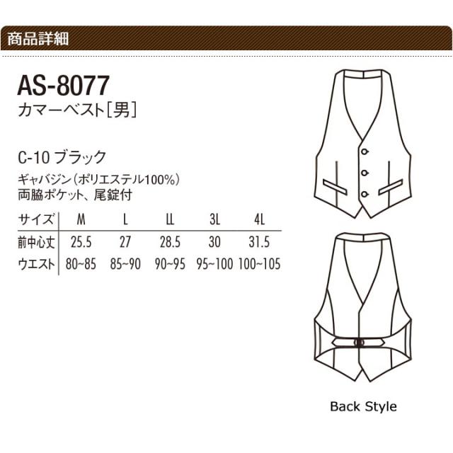カマーベスト メンズ arbe アルベ AS-8077 制電 撥水 飲食店 サービス業 厨房 ホテル 制服 レストラン ユニフォーム 男性用 チトセ
