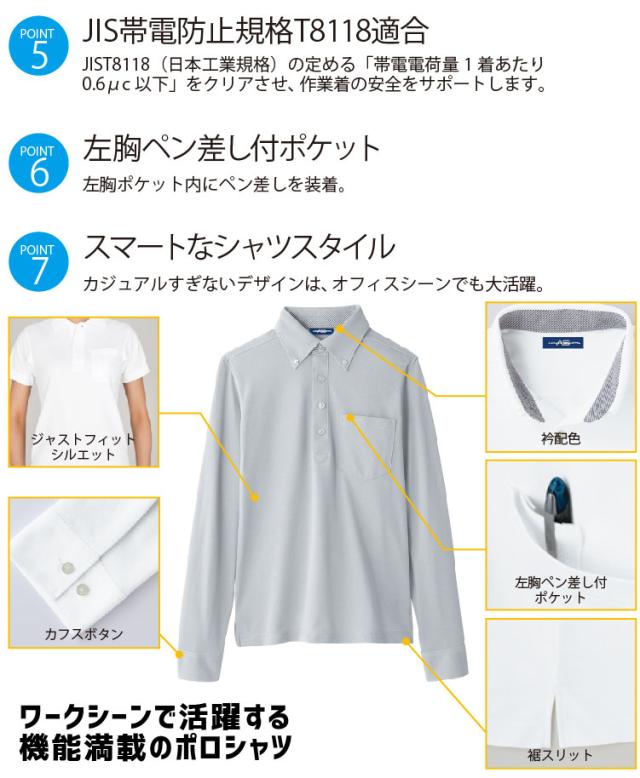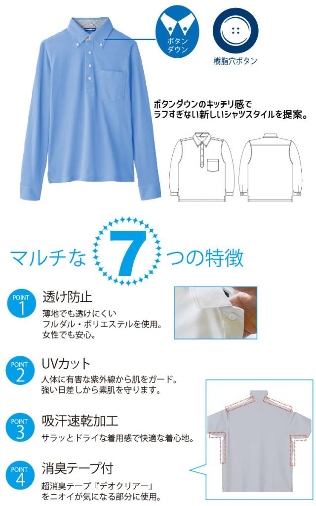 コーコス 長袖ビズポロシャツ A-278 CO-COS メンズ レディース 長袖 透け防止 UVカット 吸汗速乾 消臭 帯電防止 ボタンダウン 作業服 作業着 【春夏】