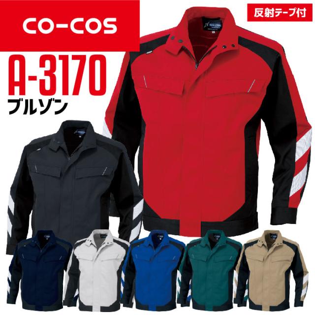 コーコス 長袖ブルゾン A-3170 CO-COS メンズ レディース 長袖 反射テープ ジップアップ 視認性 作業服 作業着 【春夏】