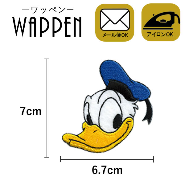 正規品 キャラクター ワッペン 刺繍ワッペン アイロン接着 縦7cm×横6.7cm ドナルド ディズニー Disney アイロンワッペン母の日 プレゼント ギフト