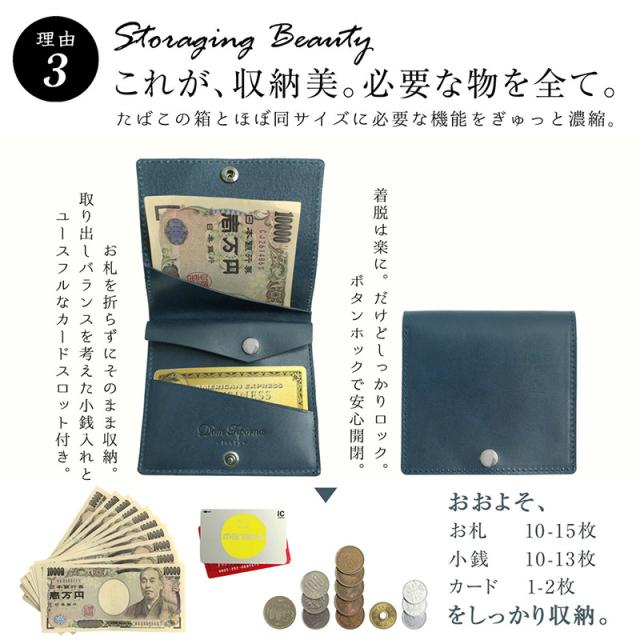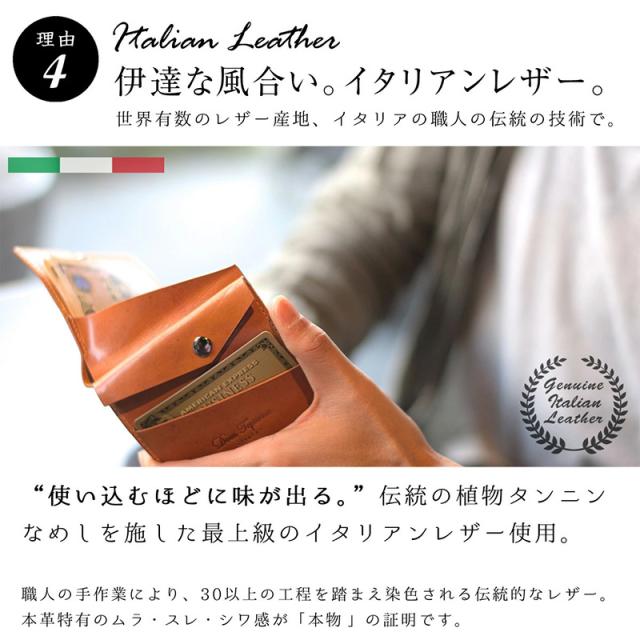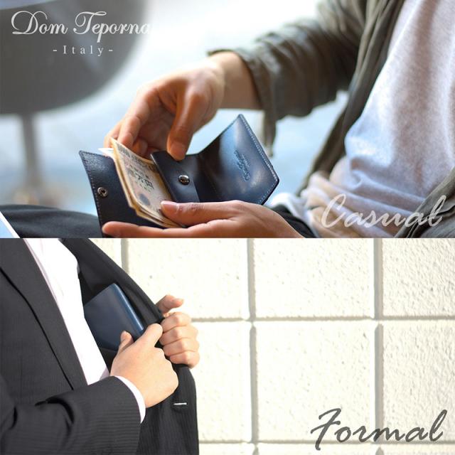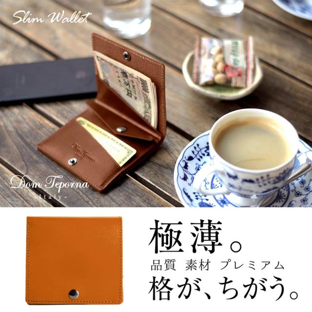 【限定500円OFFクーポン】【3,280円→2,780円】Dom Teporna Italy 薄さにこだわる本革二つ折り財布 ミニ財布 牛革 イタリアンレザー 薄型 薄い コンパクト 小さい 折りたたみ 財布 小銭入れ