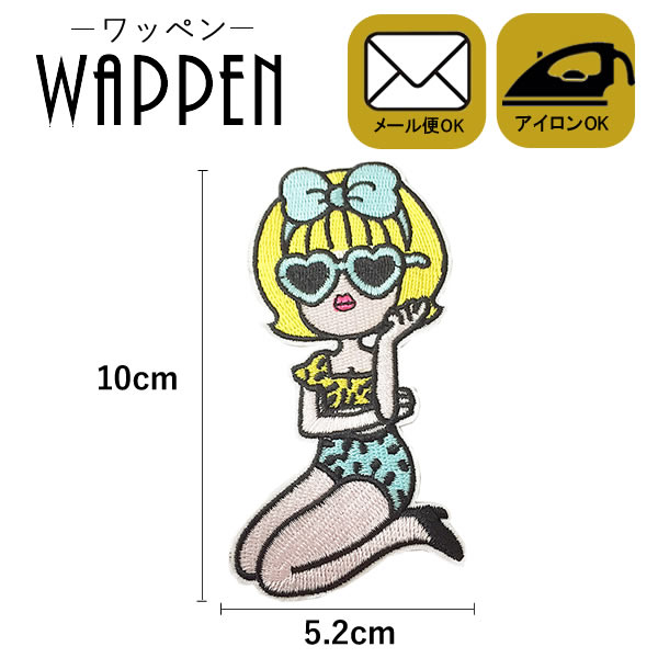 ワッペン アップリケ 刺繍ワッペン アイロン接着 手芸 手作り 縦10cm×横5.2cm ガール ハートサングラス 女の子母の日 プレゼント ギフト