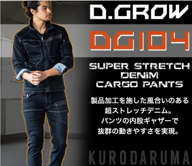 ストレッチデニム カーゴパンツ DG104 D.GROW ディーグロー クロダルマ メンズ スーパーストレッチ デニム ズボン 作業着 作業服