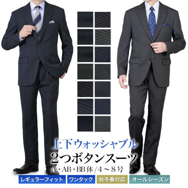 スーツ メンズ 上下洗える 2つボタン 秋冬春 オールシーズン レギュラーフィット ワンタック プリーツ加工 ビジネススーツ メンズスーツ ややゆとり ストレッチ ウォッシャブル