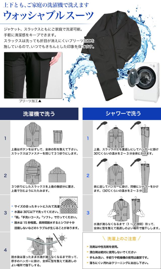| 【ゆとりあるサイジングのウォッシャブルスーツ(レギュラーフィット)】 全体にゆとりのあるシルエット、落ち着いた大人のビジネスマンにおすすめです。ジャケットは秋冬春対応の総裏仕立てとオールシーズン対応の背抜き仕立てで長期間ご着用いただけます。スラックスはワンタックでヒップ、腰周りに程よくゆとりがあり、長時間のビジネスワークにもストレスを感じさせないシルエットに仕上げております。生地にはソフトな触感でストレッチ性のあるポリエステル100%素材を採用。シワに強く耐久性、速乾性に優れた生地を使用している為、ジャケット、パンツとも家庭で洗えてお手入れも簡単です。メンテナンス、コストパフォーマンスに優れたスーツです。 |