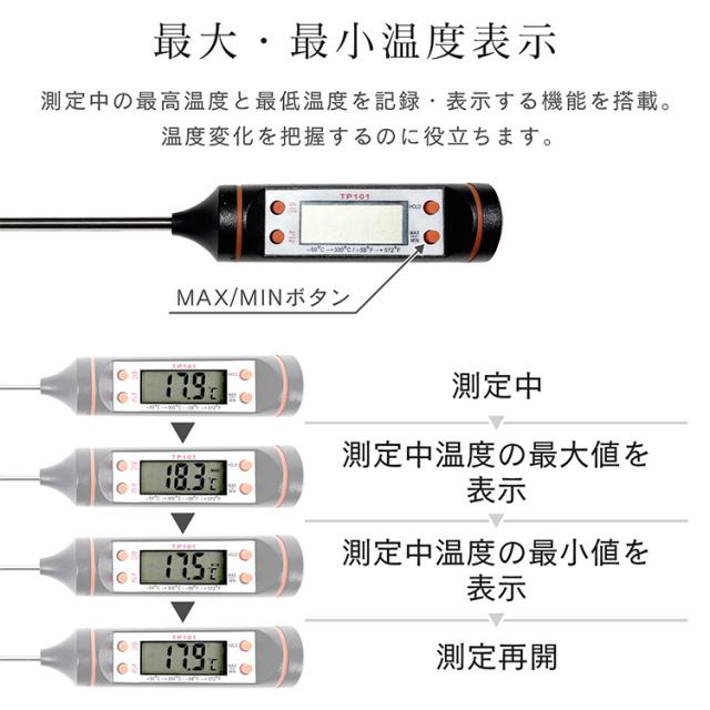 新生活 温度計 料理 調理 食品 クッキング デジタル スティック ロングプローブ 計測器 お風呂 湯 デジタルペンサーモ zk240