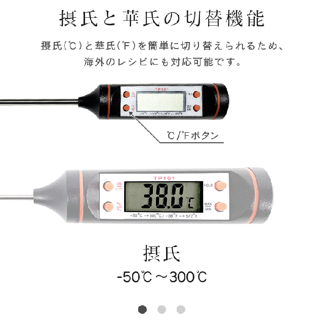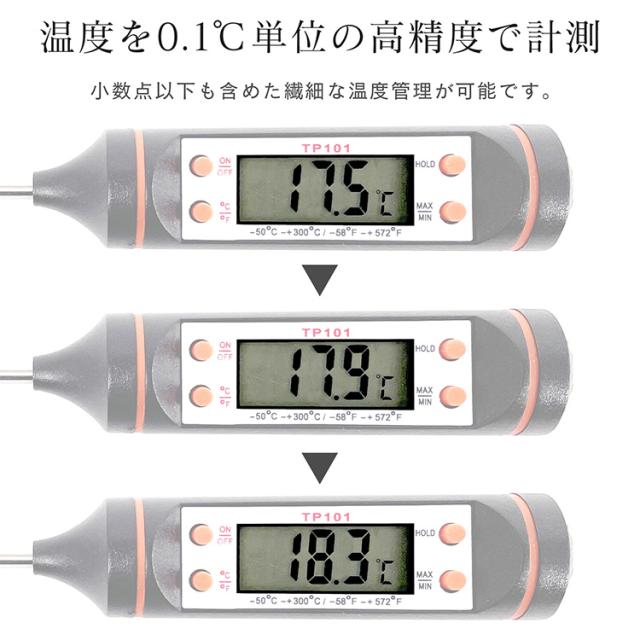 - 温度への反応も速く満足してます。 揚げものを作る際の温度管理等に使用して重宝してます。