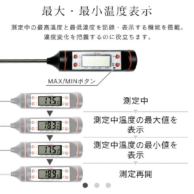 ■測定中温度の最大と最少の温度表示ができます