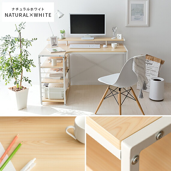 デスク 机 パソコンデスク L字デスク おしゃれ パソコンラック 収納 ワークデスク オフィス ナチュラル 北欧 省スペース モダン L字 作業机 シンプル 白 ホワイト グレー