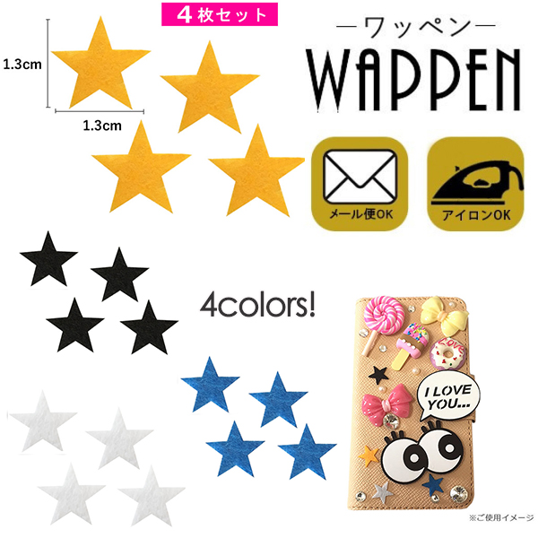 ワッペン 星4枚セット アップリケ 刺繍ワッペン アイロン接着 縦1.3cm×横1.3cm スター フェルト アイロンワッペン母の日 プレゼント ギフト