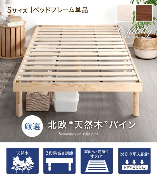 ベッド シングル 天然木 3段階高さ調節 累計販売数65万台 すのこベッド ベッドフレーム シングル ベッド すのこ シングルベッド フレームのみ 一人暮らし ベット