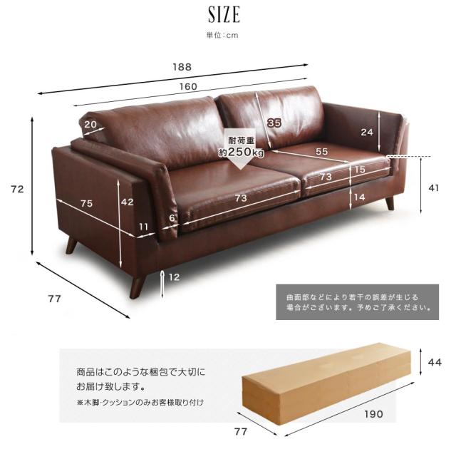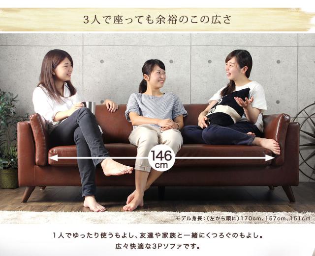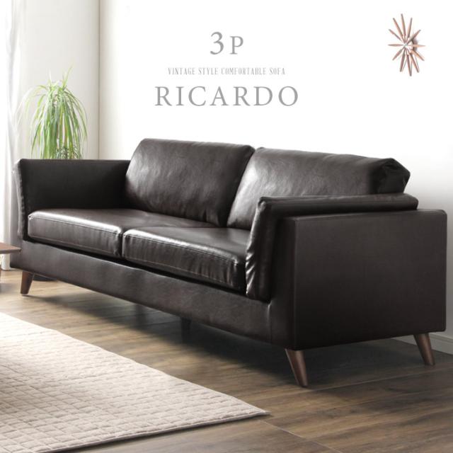 ポケットコイル 3P 幅188cm 3Pソファー ソファー ローソファー ソファー ローソファ ヴィンテージ モダン おしゃれ シック 3人 ブラック キャメル 茶 黒 合皮 フェイクレザー 送料無料