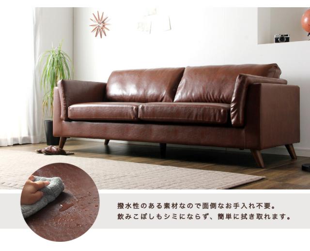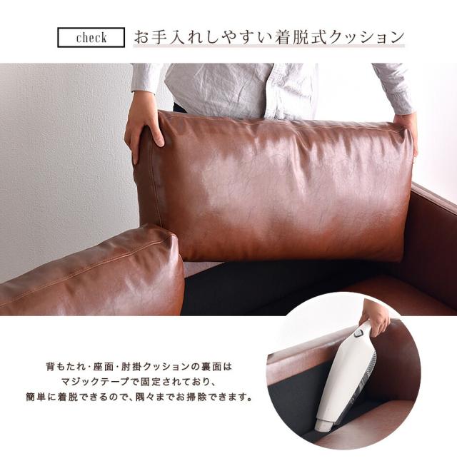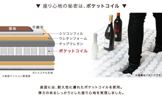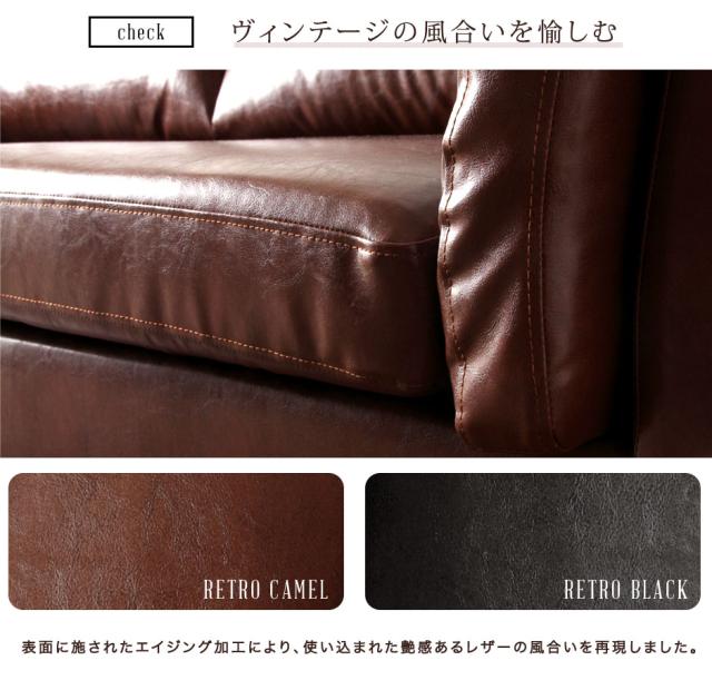 | 張り地:PVC(エイジング加工) 座面:ポケットコイル 背もたれ:シリコンフィル 脚:ラバーウッド(ラッカー塗装) |