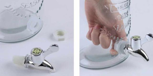 | 材質 | 本体:ソーダガラス 蛇口:ポリエチレン 蛇口ボルト:ポリプロピレン 蛇口のパッキン:シリコンゴム 蓋のパッキン:ポリエチレン 取っ手:スチールクロムメッキ |