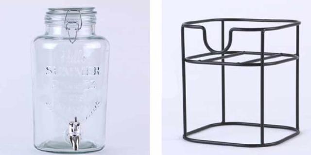 本体をスタンドに設置することで、蛇口部分が高くなり、テーブルとの間に空間ができるので、飲み物をスムーズにグラスに注ぐことができます。飲み物がこぼれたときのお掃除も簡単です。ブラックのワイヤー風で、インテリアとしてもお洒落です。