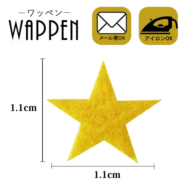 ワッペン 刺繍ワッペン アイロン接着 縦1.1cm×横1.1cm イエロー ミニ 星 スター アップリケ アイロンワッペン 手芸 母の日 プレゼント ギフト
