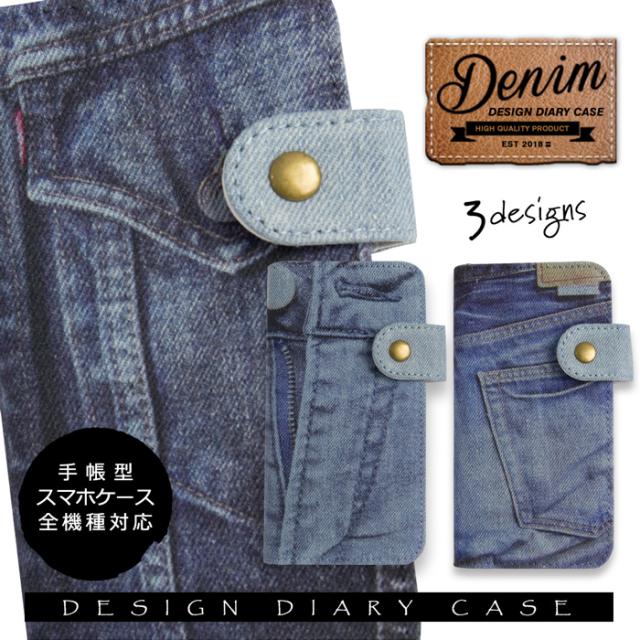 選べる3パターンのデニムデザイン デニム生地 手帳型スマホケース