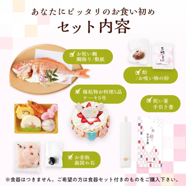 お食い初め セット 【花むすび・えん お食い初め膳 -はれももかプティ-《鯛1.5kg・ケーキ5号》】 これ1つで簡単本格お食い初め 国産最高級ブランド真鯛 料理 歯固め石