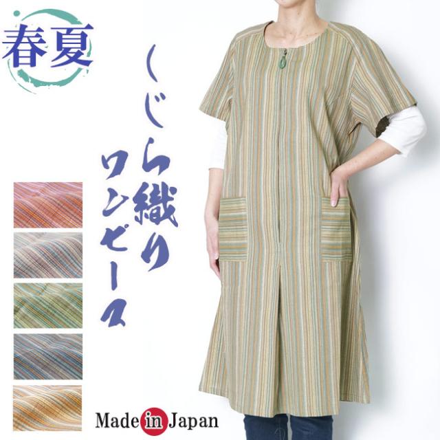 ワンピース しじら織り 日本製 4136 日本製 割烹着 チュニック 母の日 ギフト 母の日_kz