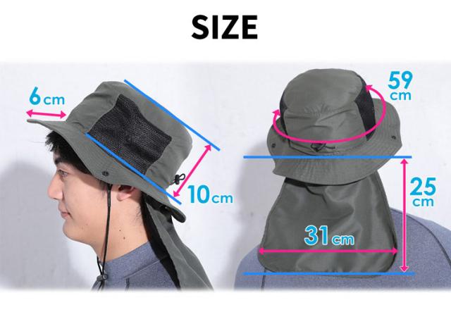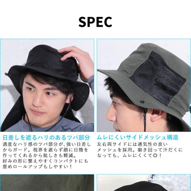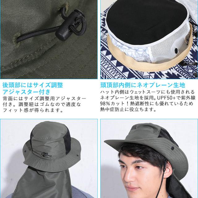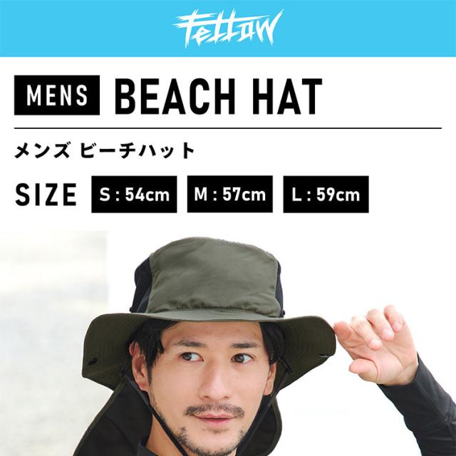 FELLOW ビーチハット サーフハット メンズ向け 頭周り 59cm UPF50+ 紫外線98%カット 熱中症対策