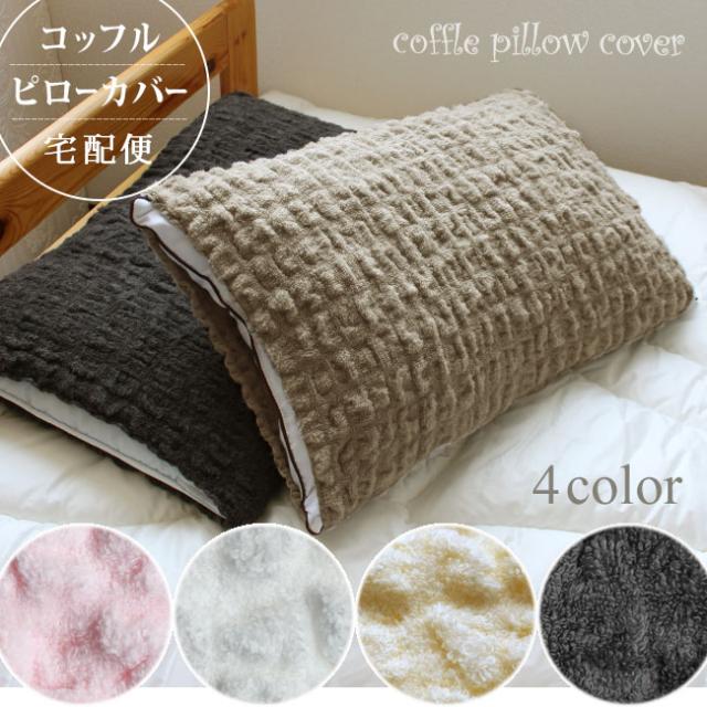 枕カバー 43×63 おしゃれ タオル地 ワッフルタオル 筒状 のびのび コッフルピローカバー もこもこ ポイント消化