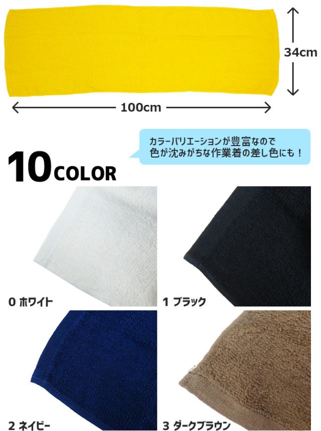 2点までネコポス可 喜多 粋 ロングタオル 無地 カジュアル ワーク スポーツ 10カラー
