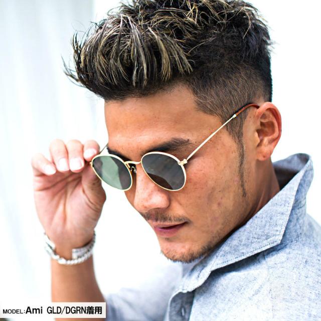 フレームにゴールドカラーを採用し、カラーレンズを合わせた高級感あるデザイン。