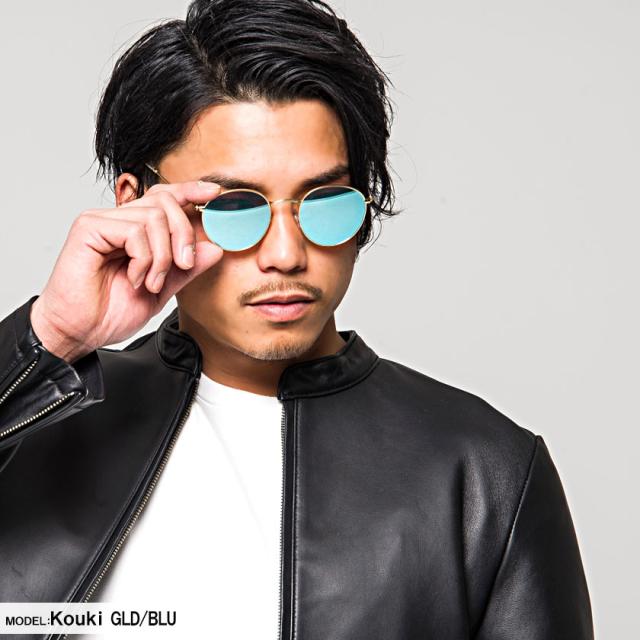 サングラス メンズ ボストン型 メガネ 眼鏡 伊達メガネ ミラーレンズ カラーレンズ 透けレンズ UVカット アクセサリー アイウェア ブルー ゴールド ピンク ダークグリーン BITTER系 ビター系 CavariA キャバリア 即日発送 [TY3536]