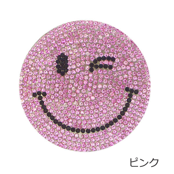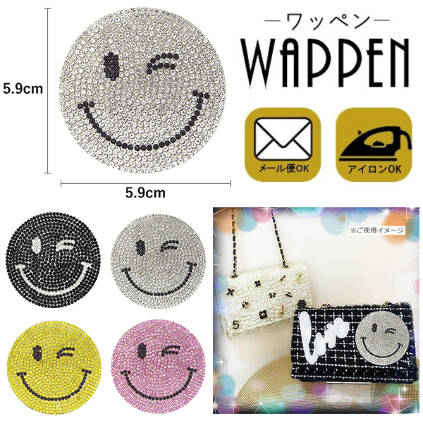 ワッペン 選べる4色 スマイル ウィンク アップリケ ストーンワッペン アイロン接着 スマイルワッペン 縦5.9cm×横5.9cm母の日 プレゼント ギフト