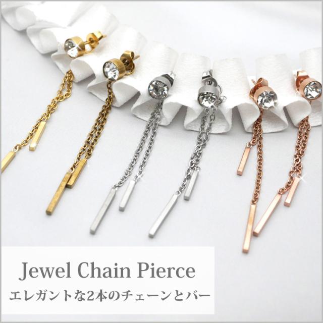 金属アレルギー対応 ステンレスピアス チェーン&2連バーが揺れる ジュエルチェーンステンレスピアス 両耳用 316L