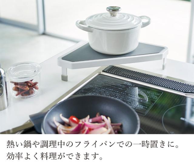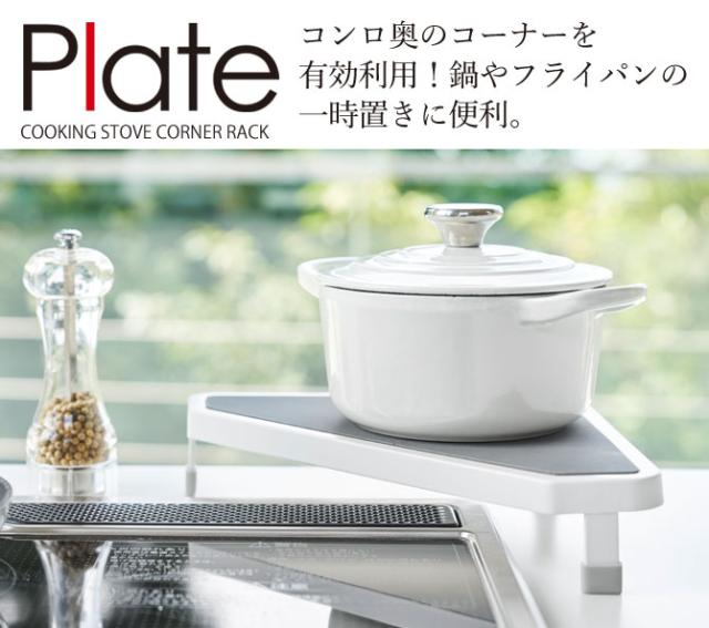コンロコーナーラック プレート 山崎実業 plate コーナーラック キッチン コンロ 鍋置き キッチンラック コンロ横ラック おしゃれ モノトーン ホワイト 3569