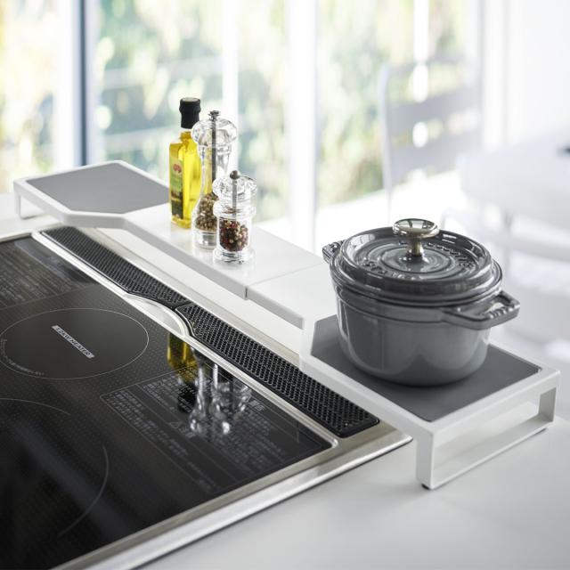 コンロ奥ラック,伸縮,キッチン,キッチン収納,小物,山崎実業,plate,プレート,ホワイト,白,モノトーン,yamazaki,生活感が出ない,すっきり,コンパクト,省スペース,シンプル,シンプルデザイン,スタイリッシュ,北欧,おしゃれ,お洒落,オシャレ,インテリア,雑貨,部屋,賃貸,マンション,一人暮らし,独り暮らし,トータルコーディネート,新生活,家族,ファミリー,整理整頓,