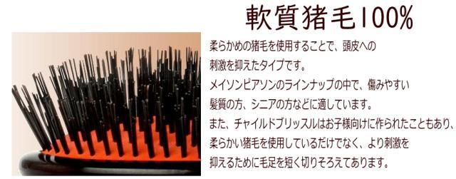 柔らかめのの猪毛を使用する事で、頭皮への刺激を抑えたタイプですので、シニアの方にもご利用頂いています。