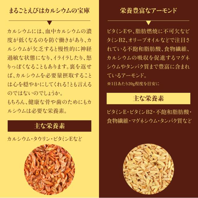 ■原材料名 アーモンド(アメリカ産)、えび、砂糖、澱粉分解物、食塩/調味料(アミノ酸等)