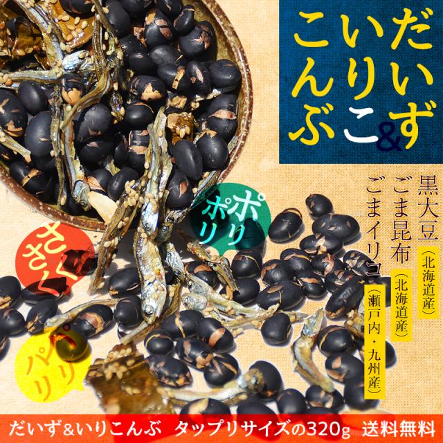 【SALE!140円OFF】<320gだいず&いりこんぶ>北海道産黒大豆 黒豆 瀬戸内九州産味付ごまいりこ 北海道産昆布 コンブ 送料無料 おつまみ お茶請け 茶菓子 海と太陽 メール便 ポイント消化 おやつ クーポン消化 クリスマス 年末年始