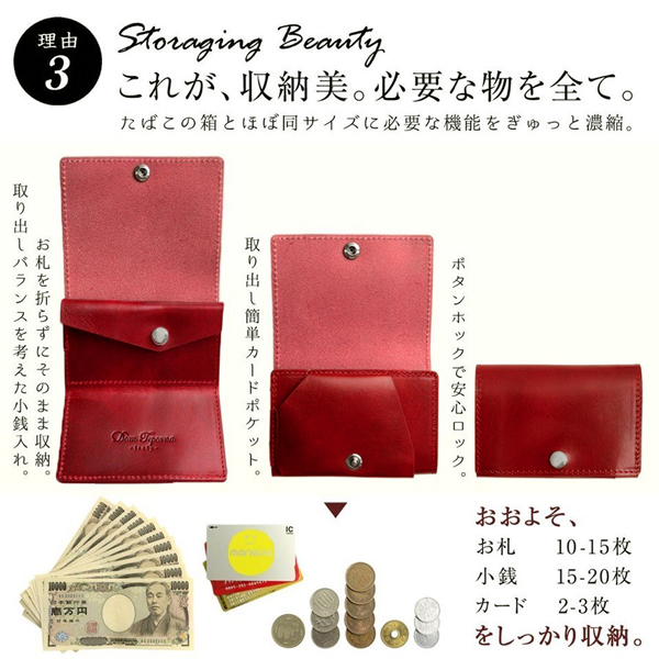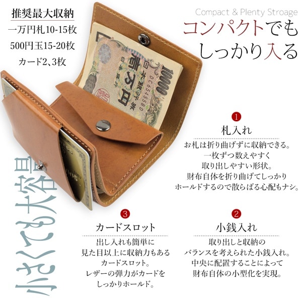 またコンパクトでありながら、推奨最大収納は一万円札10-15枚。